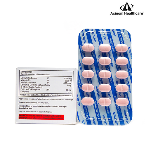 Calcium Carbonate, Vitamin D3, Methylcobalarnin, L-Methylfolate Calcium & Pyridoxal 5 Phosphate Tablets