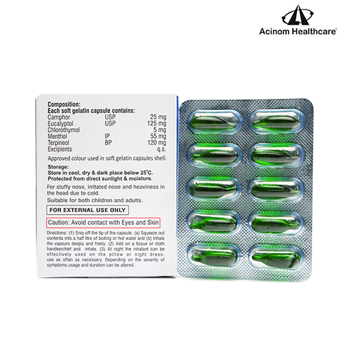 Camphor, Chlorothymol. Eucalyptol, Menthol & Terpineol Soft Gelatin Capsules