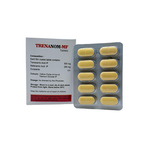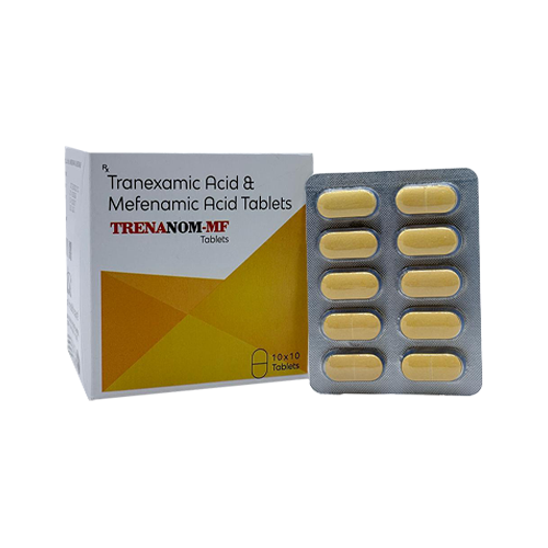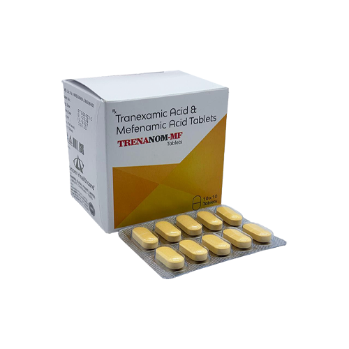 Trenanom-MF is a potent combination of Tranexamic Acid and Mefenamic Acid tablets designed to effectively reduce heavy menstrual bleeding and provide relief from associated period pain.